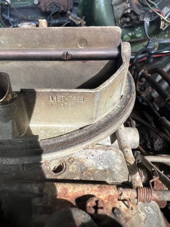 The car originally had the Carter ThermoQuad on it. The Holley R7855 is an OEM-replacement Holley for the Chrysler B/RB engine, which is why it came with the correct Chrysler throttle and kickdown linkage hook-ups on it. With the stud for the throttle/cruise control transferring from the original carb.