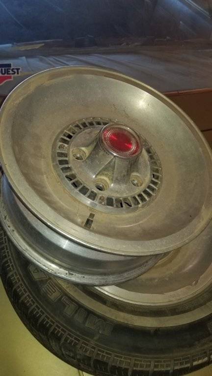 How about a set of slots like what's on (or was) my Newport behind the Plymouth? Those are Ford Wheels, Shelby Cal. 500s! 15x7s. You can get a set for less than $200, and they look great on any car!