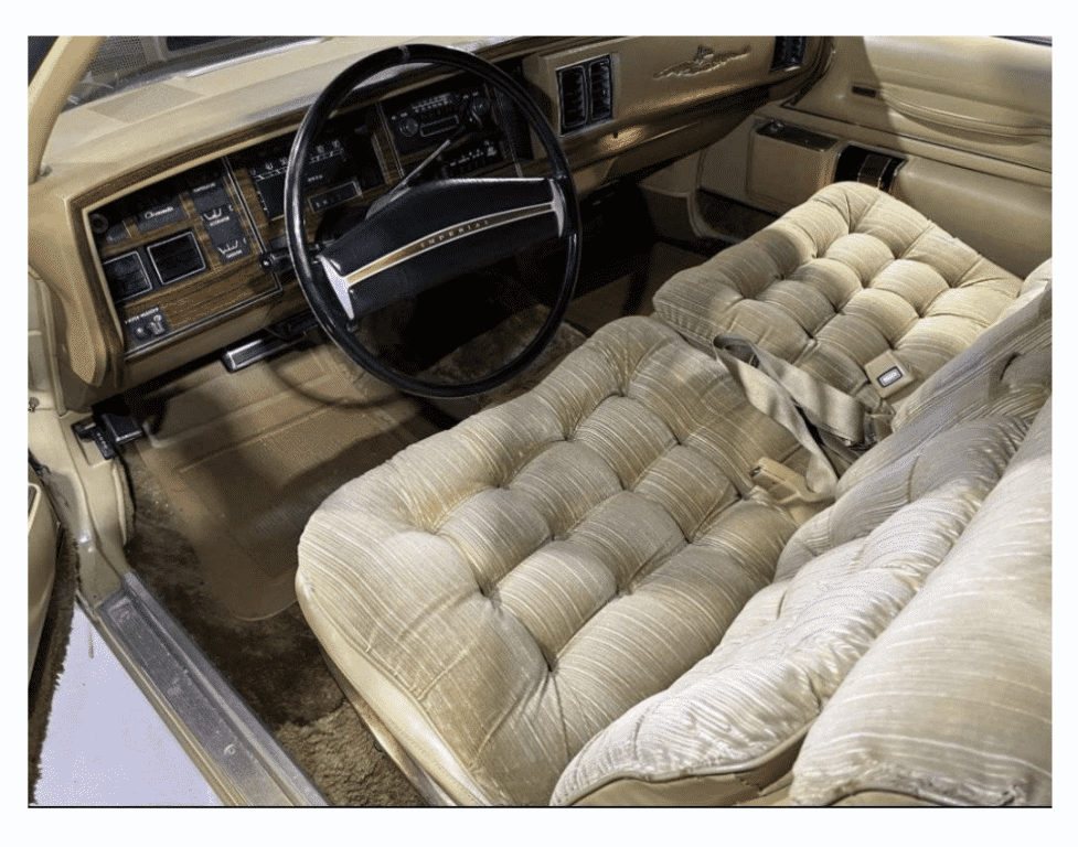 "I spent over $10,000 in a total refurbish. I replaced the insulation above the headliner to the insulation under the new carpeting. My trimmer reupholstered all the seats using all new fabric (Mushroom Quartz) for the velour to replace the (Golden Fawn) velour. We dyed all the available leather in black, replaced that which needed to be, and dyed all the panels, dashboard, door panels, etc. The top was ordered new in black using all the original foam underlayment."