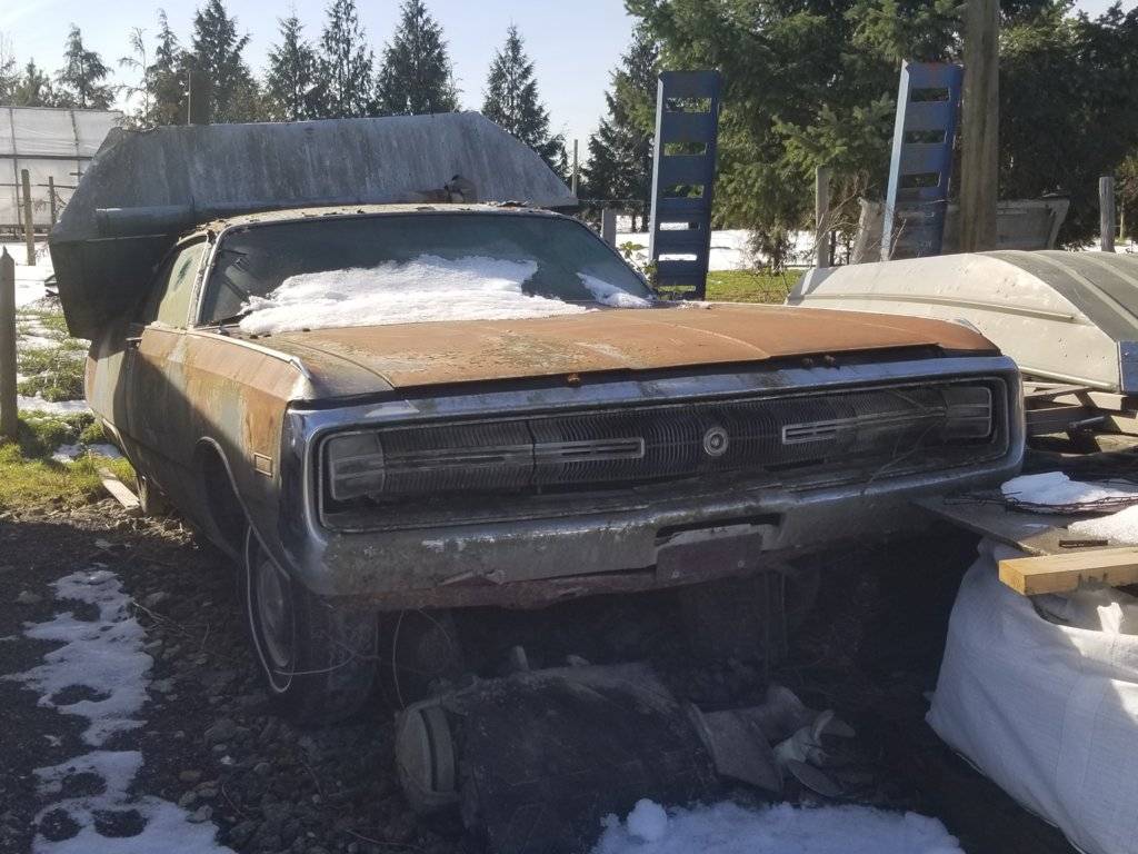 Thanks for the replies, it backs up my thoughts on value. The teal 1970 is way to far gone to save, so I'm relying on parts only. Nothing on the car is great, its either rusty or moist. I would try to salvage any interior parts and I'd keep the Cbody specific parts for myself. The Motor alone is worth $1500 up here as a bare core if it somewhat turns over by hand. I would keep the Manifolds with heat stove (thanks for the tip @fury fan) and air cleaner off the motor.