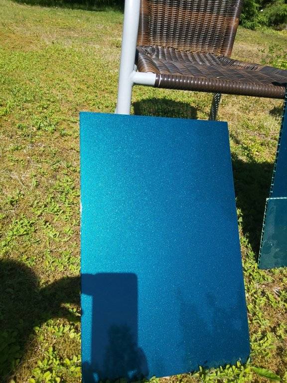 Nice color choice and once again, incredible talent!Some progress for a change, the roof painted and now ready for vinyl , also color is now decided. What can you do, if you like some colour there's no reason to charge that! I look at old colour maps since 1987 and all colours what I have underlined is somehow turquoise ! This time little more blue,let's say I call it "Baron petrol "! I think Baron deserves this time little more sparkle! Roof is painted with 2 coats of epoxy then two coats of polyuretan topcoat and now waiting for vinyl.