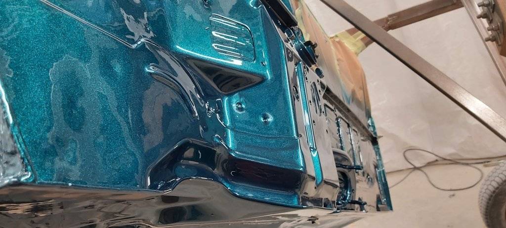 Looking great!Firewall painted with topcoat and color looks better and better! Metallic is extra coarse but it's still stylish (..atleas to me) without Metal flake effect , I think Baron deserves some shine over it!