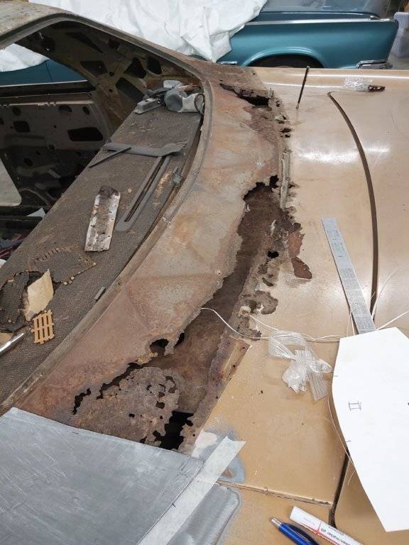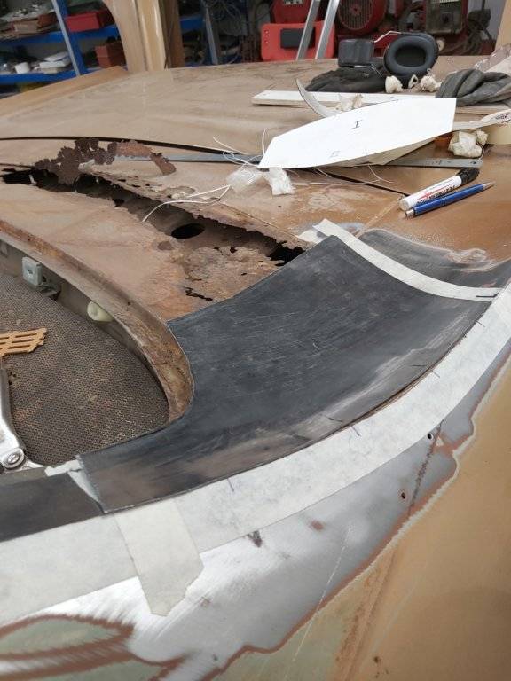For someone who claims not to be a Metal Man, there’s some pretty nice work my friend. Just sayingWindshield corners ready and waiting for final sandblasting and epoxy. Then next project...rear window surrounding...sad looking, amazingly trunk floor is not so bad. Only driver side rear quarter is rusty, but hey, they all are! My second piece with English wheel, I used the tape method to copy a surface.