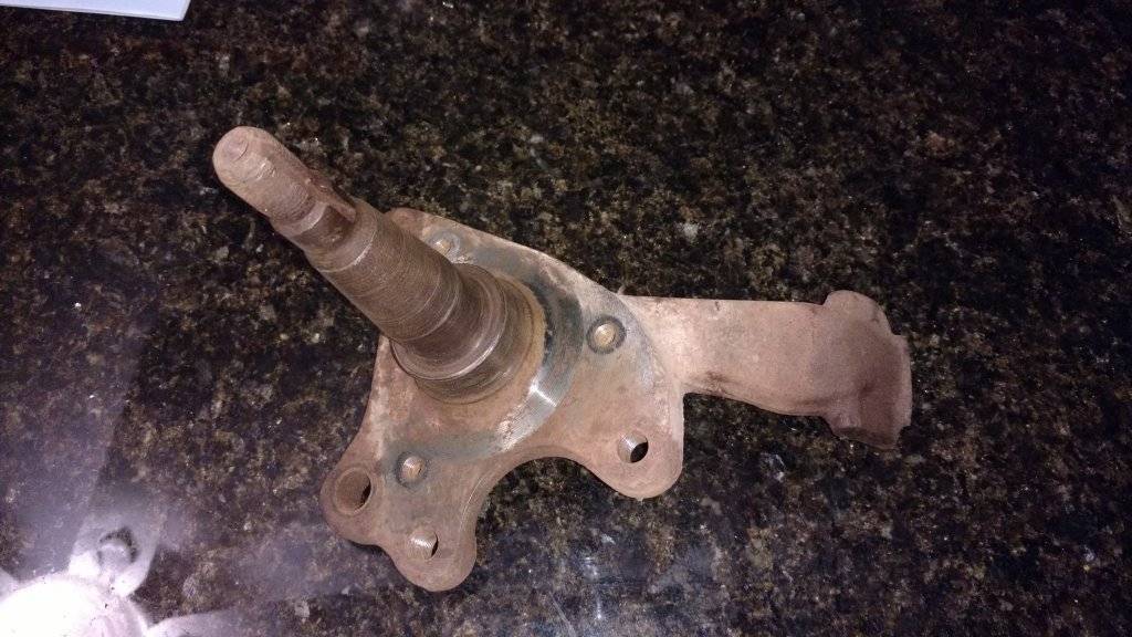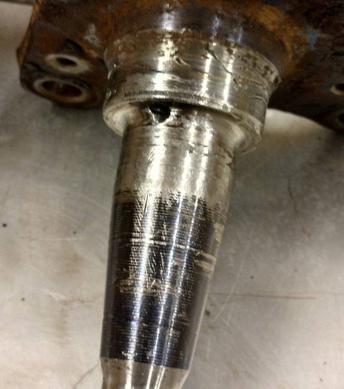 Picked up my spindles for my disc brake conversion this summer. Just getting ready to start the process and clean up the spindles. The one side looks great but this side is scored up pretty good and that dark spot near the base is a small hole.