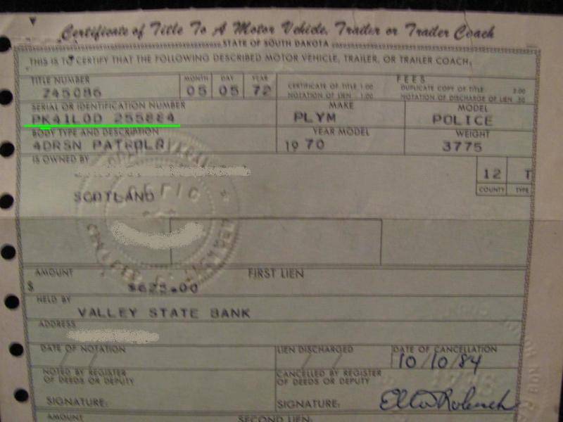 If there was a factory police package the data plate would reflect so, if not the title itself, not just an engine code.