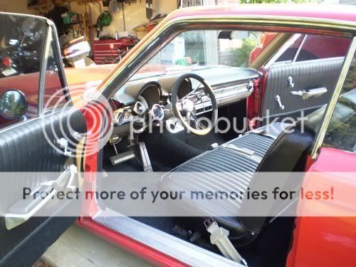 This was the interior of the car when I got it. Recently redone, but I don't think the door panels are right. Some of the trim was with the car, but I don't think I have everything to put them back to a totally stock appearance. Its a cruiser, not a 100% stock resto. But they look like something is missing. I believe that something is lateral chrome trim in the upper third of the panels. Hate throwing more money at the car, would you fix it? And yes, thankfully, the stock steering wheel was in the trunk.