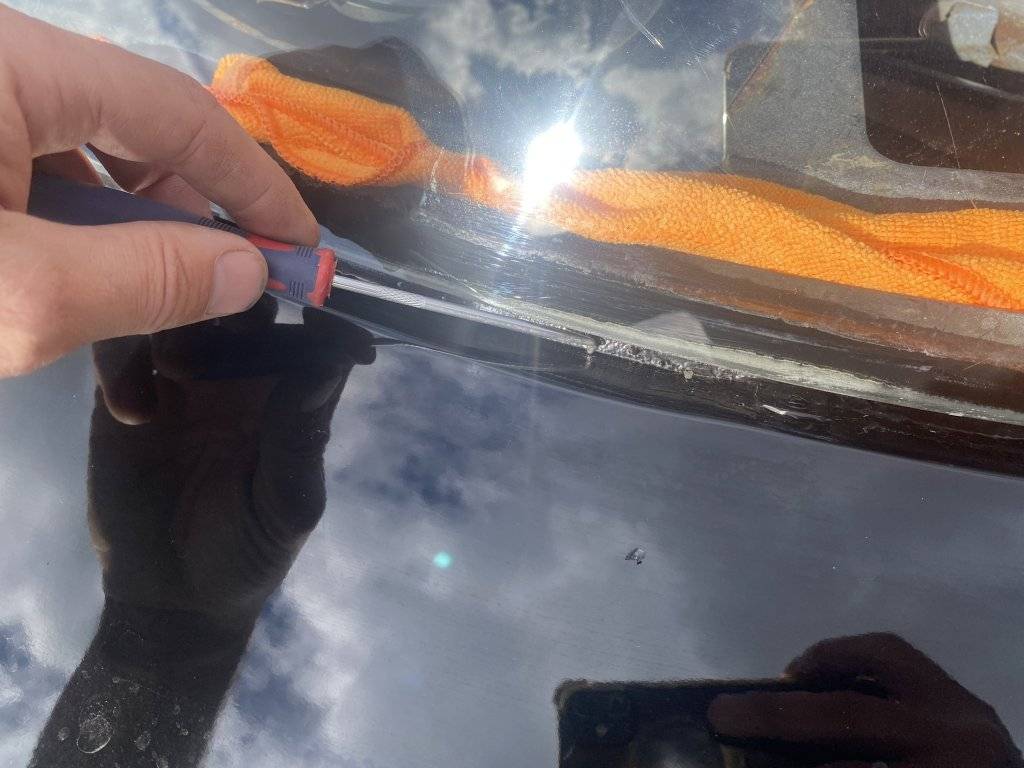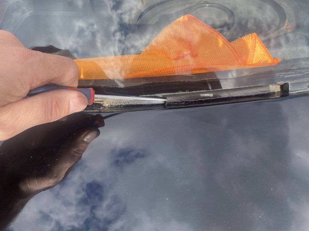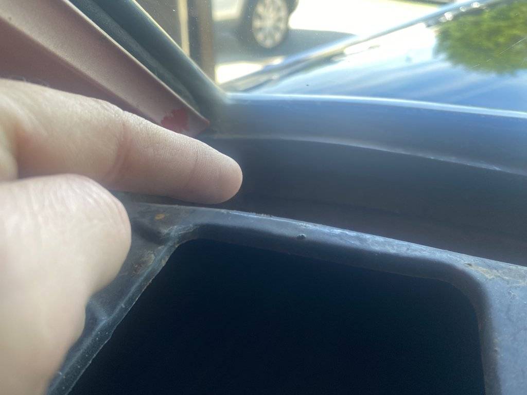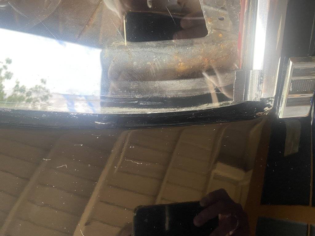 I'm guessing that I need to remove the stainless steel trim, and then use something like a clear windshield RTV sealant, or perhaps the black 3M weatherstrip adhesive to go over the seam between the glass and the metal? Not sure how to proceed, but I know that many of you have been here before and know what the next steps are. Thanks in advance for your advice!