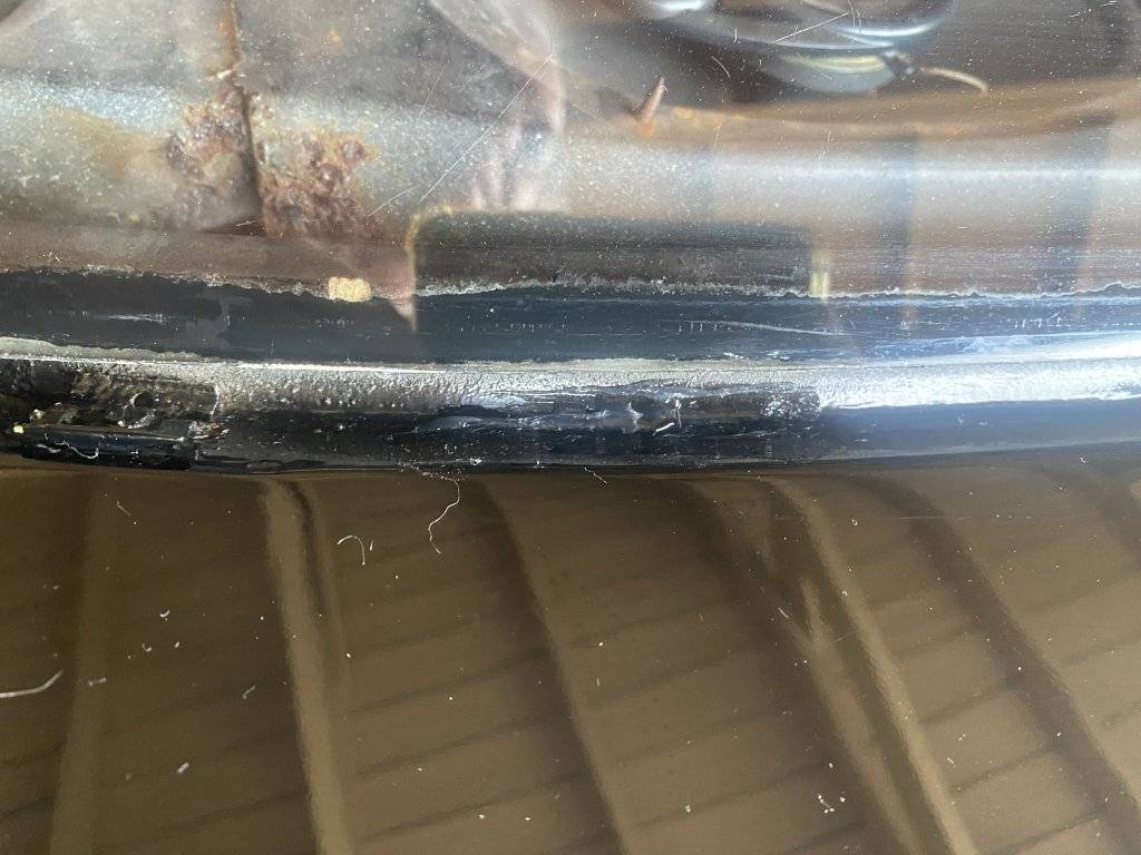 I can see that someone, at sometime in the past, did some sort of repair to the seal, as some black rtv-like substance can be seen, but no other details are available.