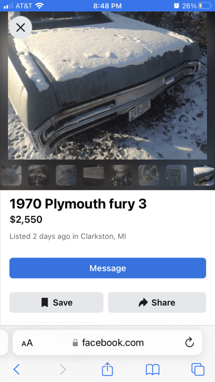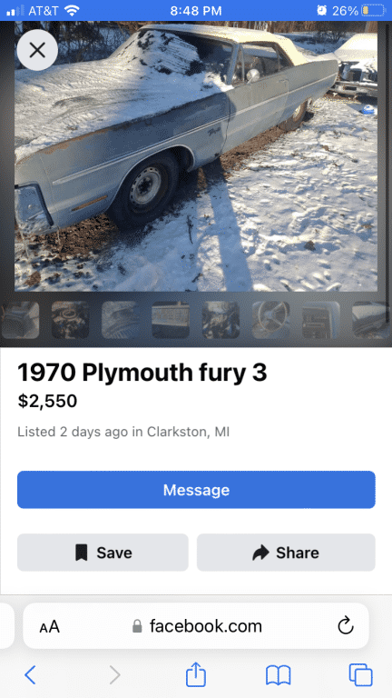 I figured I would beat @ayilar to the punch this time. Without further ado thanks to @detmatt, we now have this 383-4BBL N-code EB3 Fury III convertible for sale in Michigan. Fender tag is PM27NOD131512 if I’m reading it right. As a side note, please feel free to correct me on the VIN, and resize the pictures if you wish to.