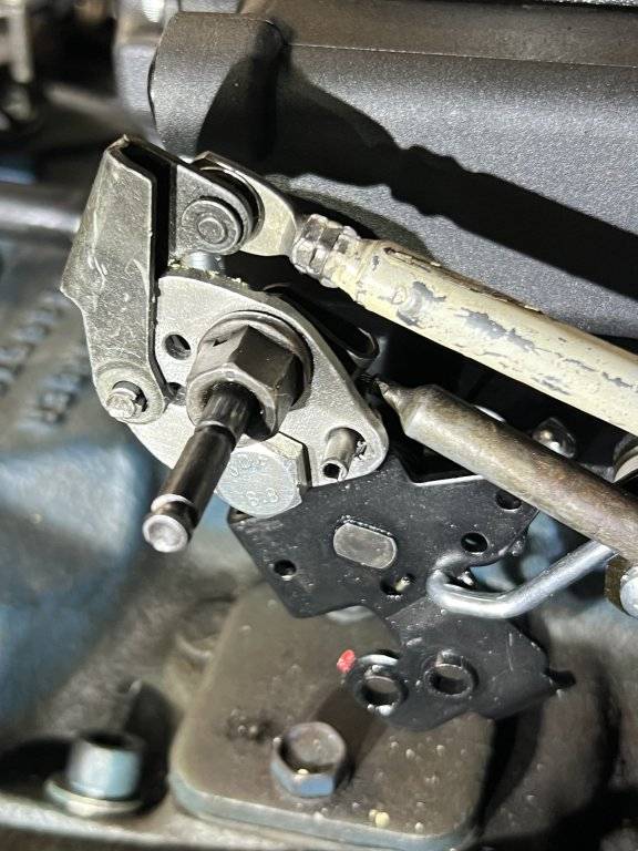 Cruise control was moved to the outboard end of the alignment pressed pin. It works fine now.