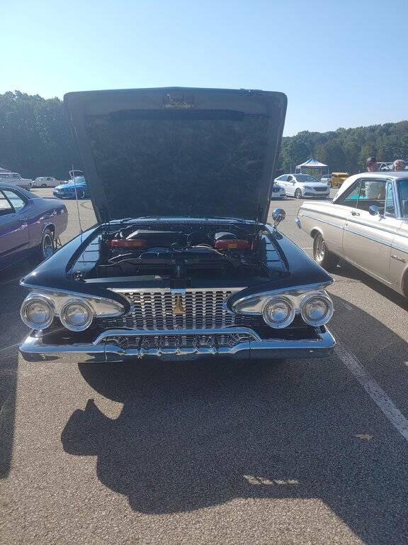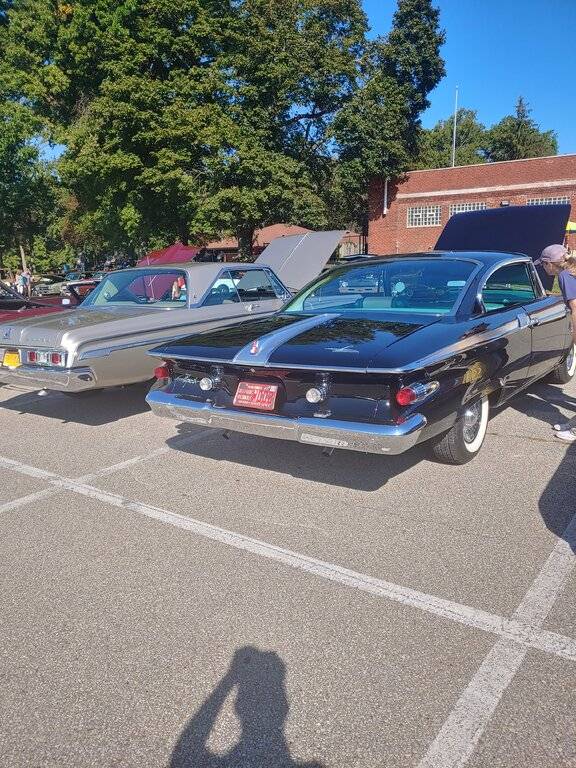 More. Chased a 61 Chrysler 300 in red with a saddle interior all afternoon every time I would get close for pictures it would move around to another spot or a crowd stabding around it finally gave up gorgeous car never seen it in the area before.