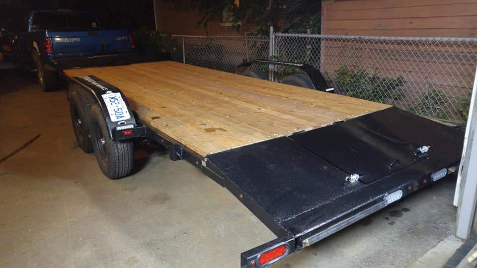 Here's mine. It's a 20 foot steel deck with a winch. One thing I like about it is the axles are set pretty far towards the rear. It never gets the tail wagging even hauling a car backwards. Oh and as Stan will tell you the most important thing you want on your trailer is road wheels. :lol: