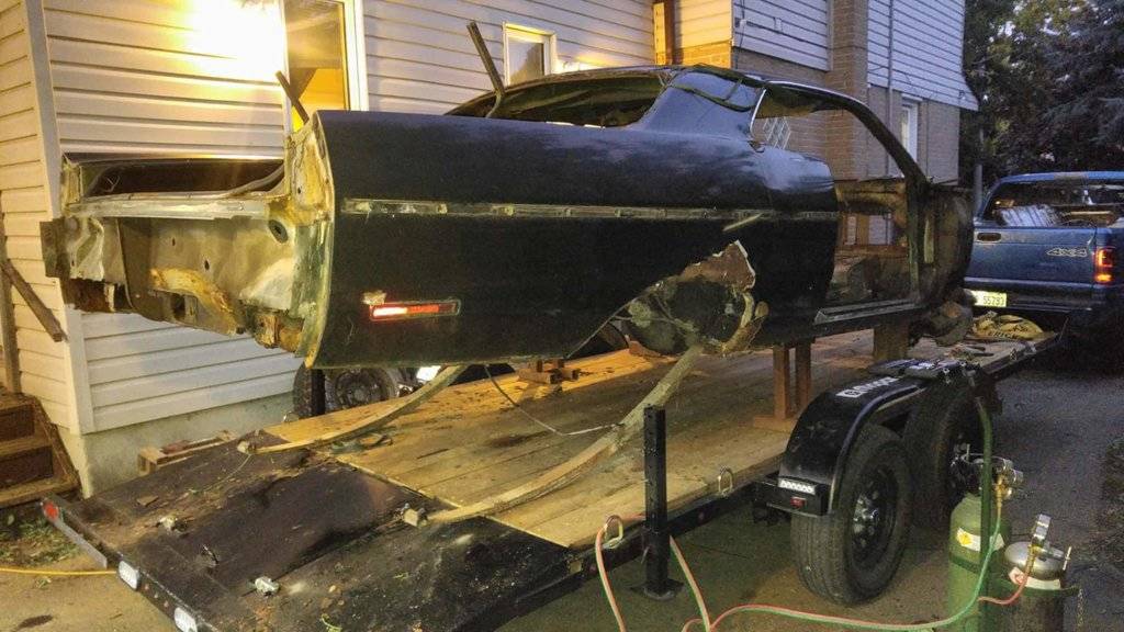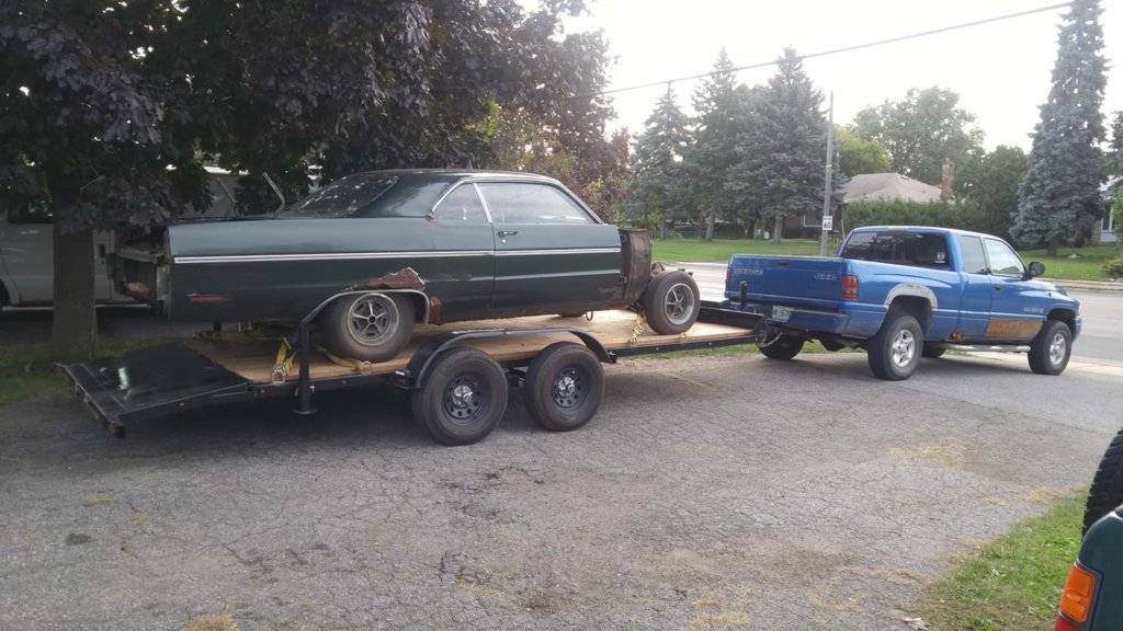 About a 16-20ft trailer should be fine with most things. At 20ft you can have a little bit of hang-off and be able to carry a few extra parts along the way. Engine block etc.