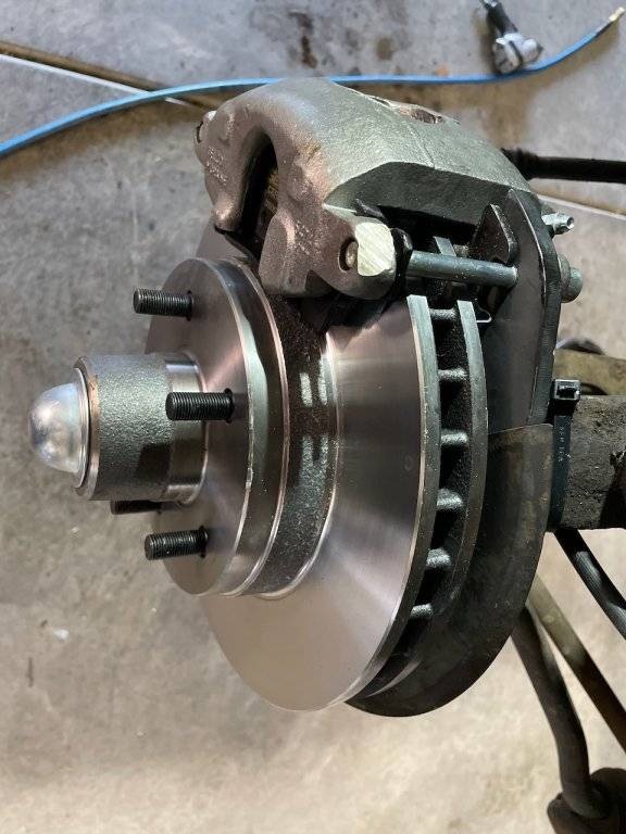 Good morning C body people. Well its been 2 years to the day since I fixed the brakes on my beautiful 1967 Imperial Crown 4dr Hardtop. After many expensive attempts to get the BUDDS calipers to not leak by buying SS modified ones for big money and Yada yada yada I threw in the towel on the Budds and built a slick simple conversion using full size GM , Cadillac, Ambulance, Police, commercial large single piston calipers available in any auto store around the country. Conveient that the full size GM's use also the 5" x 5" bolt spacing. I never posted about this upgrade I did to my Imperial back then as I thought I would do it later after I knew how it was working. Well the car stops amazing the last 2 years, no leaks no vibrations, when you put your foot on the brakes at highway speed the nose of the car comes right down and stops this be heave beautiful car like a dream. Anwyay a few pics for you below and if any of you have questions post here or PM me. All the best guys and galls. Reg Riemer.