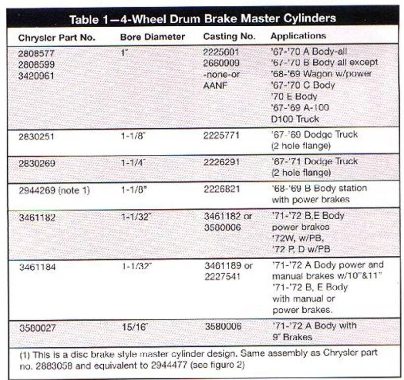 For comparison, here are a few master cylinders on other 1969 and 1970 model-year P/D/C cars:
