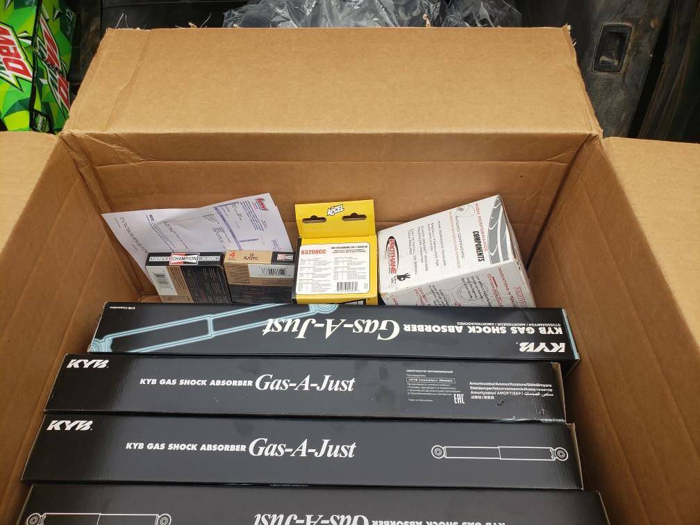 What's next? Why, five new Hankook H724 whitewall tires will be installed by Discount Tires of Rockford this afternoon (they are upstanding guys who honor their sale prices), and then Wyatt will install the new Moog replacement tie rod ends (1, 2) and idler arm (which I bought from Summit Racing, after reading Dave's suggestion to not just replace the ends). Then, the car will be ready to get an alignment in time for Volo!