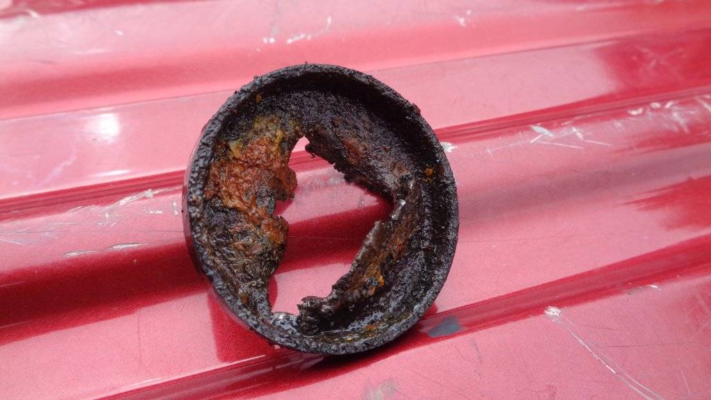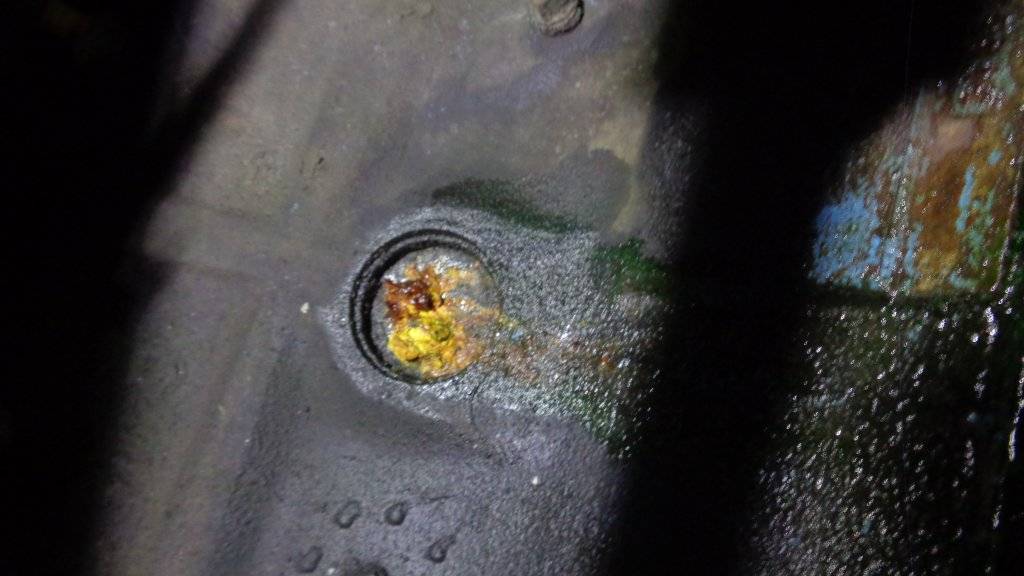 Todays update it was discovered on inspection of the steering column shift linkage that two freeze plugs were leaking. As the following photos show these two freeze plugs were ready to rupture. The water jackets inside were found in excellent condition.