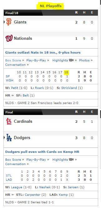 Another extra inning game for the Giants v Nationals ...