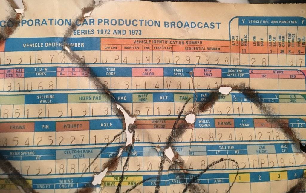 Wait! You are right! The Build Sheet doesn't match the car VIN. I wonder how that happened. Cushion replaced with a junkyard replacement at some point?