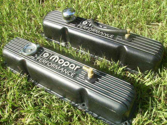 Mopar aluminum valve covers, 440 383, good cond ,no cracks, breather and pvc included,need paint, or good driver.$50.00.