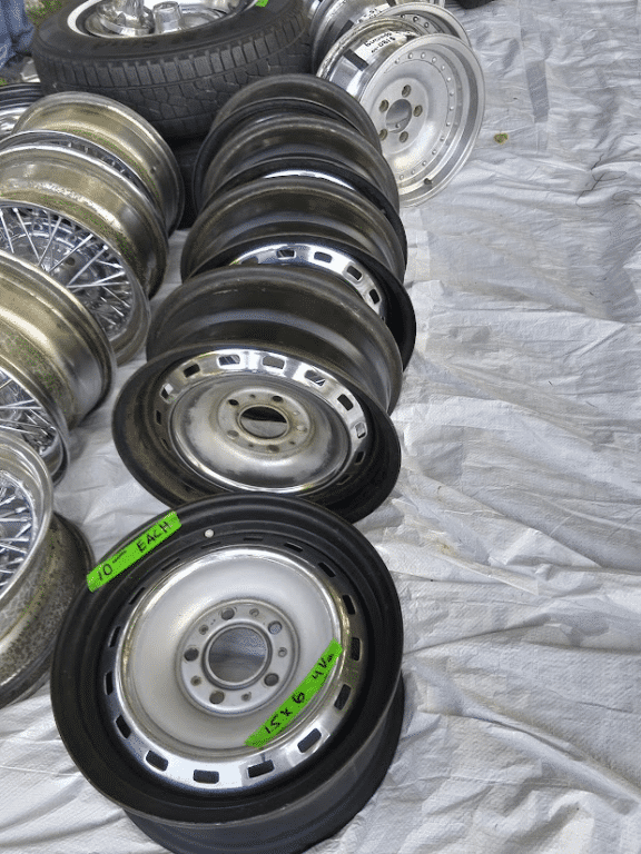 I went to the show.It was very well organized and saw some really nice cars I was amazed at the number of manual transmission cars.Also there were a lot of dodge darts!.I would rather have this car show broken down into classes instead of random parking.To me that would be nicer but they must have their reasons.Saw a 70 Chrysler 300 convertible in light green with white interior that went thru a two year restoration that was just beautiful.The owner has had it for 50 years!By far my favorite car in the show.I wanted it!Enjoyed the day and weather was great.Seeing the Trailer Park Boys beaten Chrysler was fun as well.The previous posters covered most of the pictorial territory. I'll provide a few more here. Weather yesterday was hot and muggy but fine if you rested in the shade between walks. Met with Kevin McCabe our numbers guru. Kevin seems to be recovering nicely from a recent medical setback. He was there with his pristine 78 Aspen wagon. Check out the prices on the road wheels.