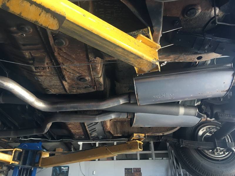 I arranged to get new mufflers installed and one was selected that matched the reproductions that were on the car. I got to the shop and they were still waiting for their delivery, this gave me time to get under the car and look at the areas I still need to detail. The mufflers came in and they made quick work of it. The car was taken for a 20 mile test drive just because, I like the sound of these new mufflers better, not so hot roddy.