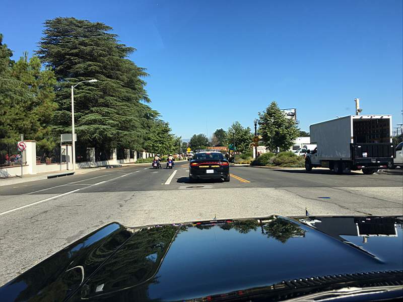 I got the car all loaded up last night and was just waiting for Ron to show up. We had a 400 mile drive to Cameron Park for the Cops and Rodders show, once Ron arrived we headed out and topped off with gas. The first 90 miles went just fine to where we stopped for lunch, a few miles later as we went to get on the highway the car sputtered and died. We gave it a minute and fired it up and continued, once up to speed the car ran fine so it seemed and we continued, 25 miles later we hit a grade and the temp starts to rise. We made it to the summit and as we started going down so did the temp, that was till we saw the sign for the flagman ahead. Sure enough as soon as we stopped the car died. Nowhere to pull over I sat waiting and figured I’d fire it up when traffic started rolling, no go, coasted to the shoulder a little further up.