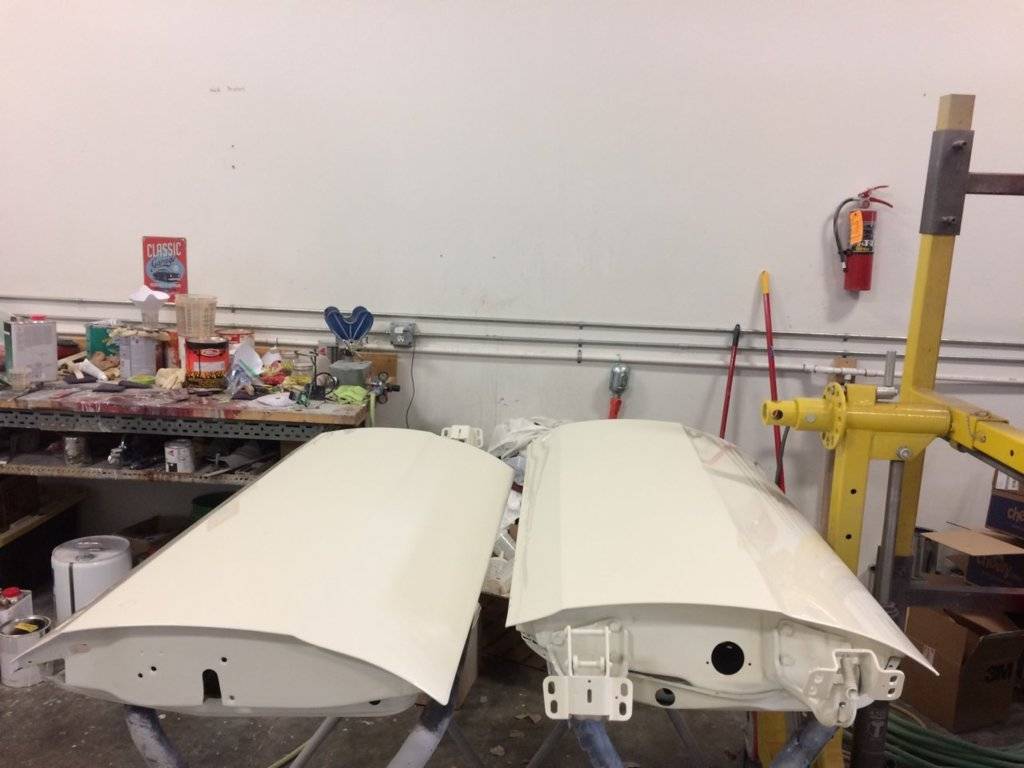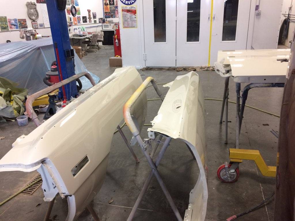Well the day has come! My Hurst is back in her white again. Now for the big process of reassembling her. The gold will be applied after she is assembled just as it was originally done. Thanks to Trev to allow me the opportunity to photograph two original unrestored Hursts. I am going to tape and spray them in the same manner as it was originally done. I used single stage paint to get the sheen as close to original as possible. I think clear adds too much depth.