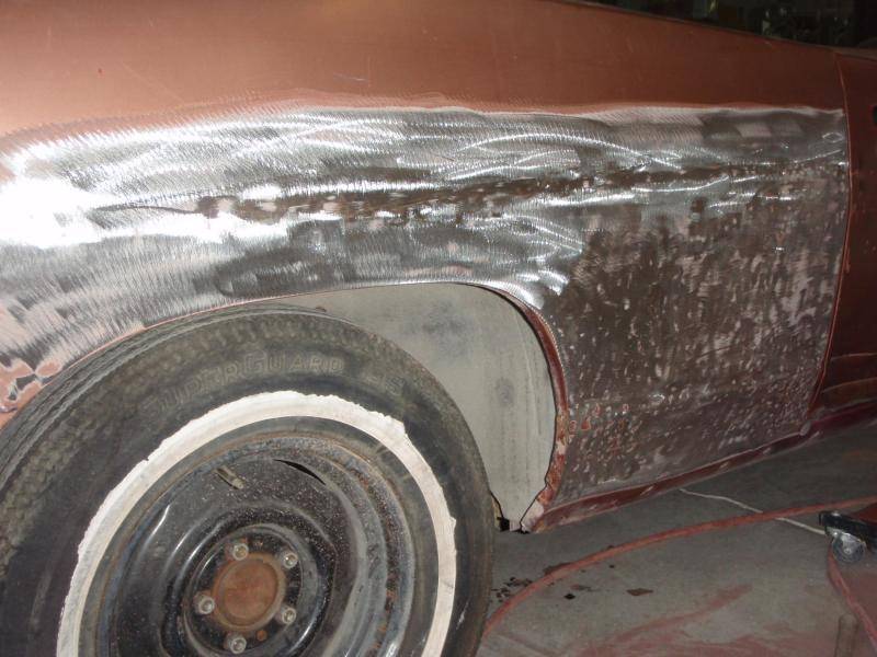 Started doing the metal work on the Charger today. The right quarter is the worst spot but I got it roughed out pretty good. Tomorrow I'll spend a couple more hours and finish up so it won't need too much filler.
