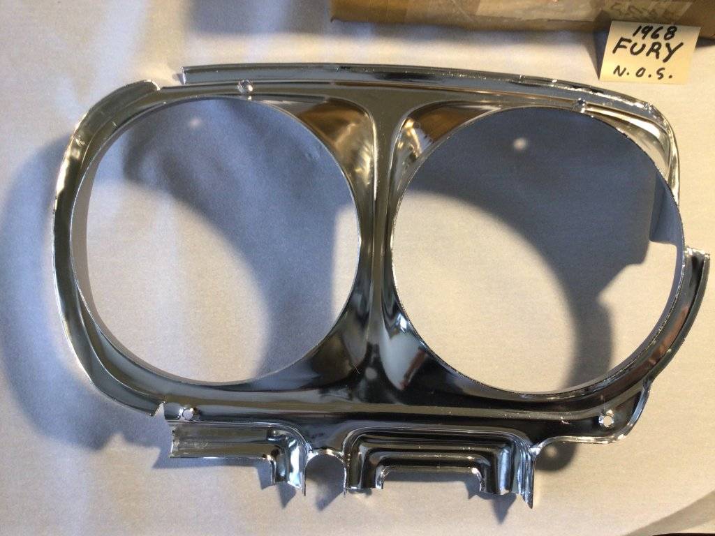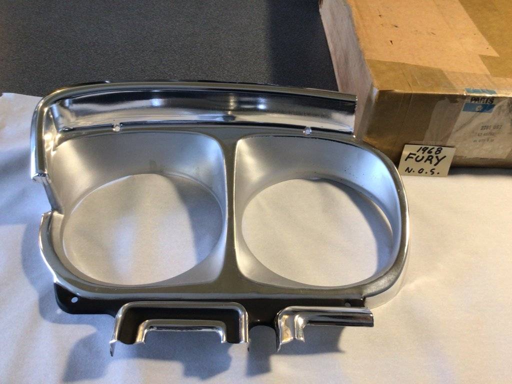 N.O.S. 1968 Plymouth Fury headlight bezel.