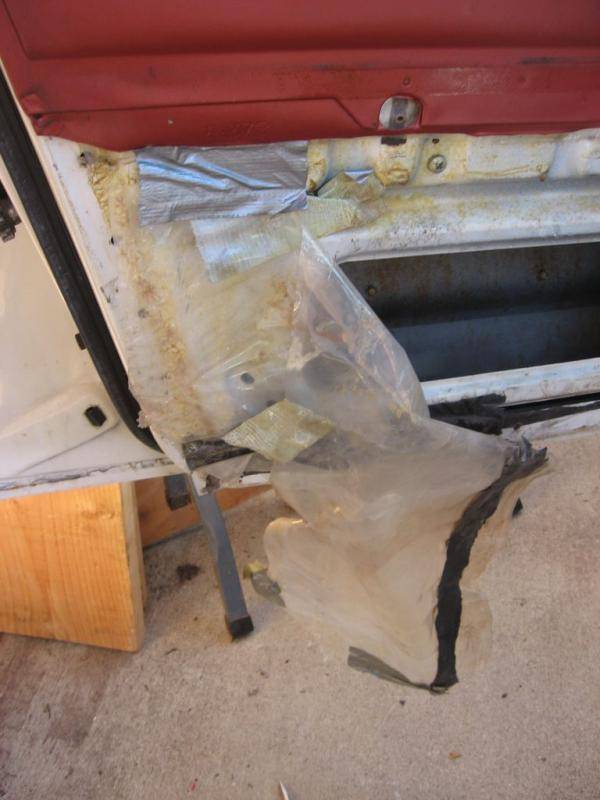 Someone has obviously been in there before, and thought duct tape was a really good way to keep the plastic on: