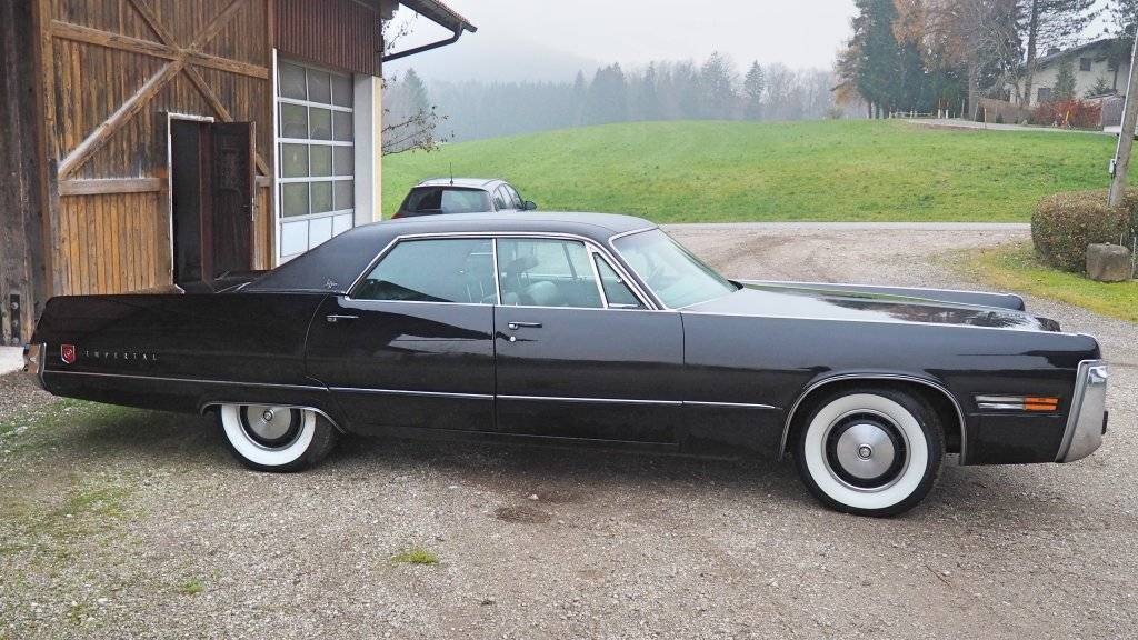 I just love about all of them. So much so that I own GMs, Fords & Mopars at the same time. Unfortunately I was yet unable to aquire my #1 dream car on my wanted list, a '70 AMC Rebel Machine. So I've decided to go further down to what has also been on my wanted list for years, a '72 Imperial 2dr. Found one that had been completely restored for sale online, a couple of years ago but I've waited too long and it was gone. Just recently, a 73' 4dr popped up for sale in the Netherlands. TX9 Formal Black paint with green interior. It looked decent and so I've decided that a '73 4dr is just as great. Didn't want to wait this time so I bought it site unseen. It has been delivered last week. So, I'm now the very proud owner of a '73 Imperial LeBaron 4dr