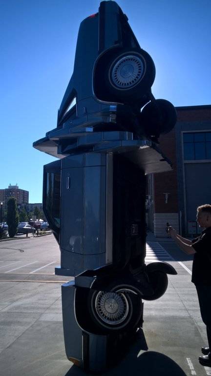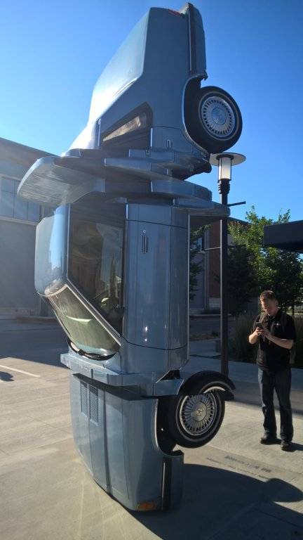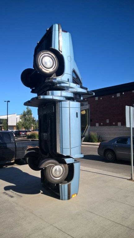 I just about broke my neck taking notice of this, it wasn't there last week. There's a notice on the ground "Do not climb". It's in the brewery district in Edmonton Alberta so, good luck with that.