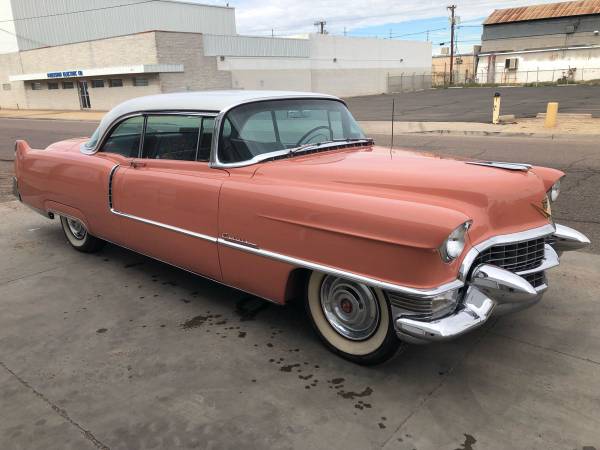 Real deal Pink on White Elvis Presley 1955 Cadillac Coupe Deville. Newly repainted pearl colora, new interior, new white wall tires and great running original motor. The desirable one too. Drives like a dream and gets so much attention everywhere you go. Come live like a rock star and drive this dream boat!!!