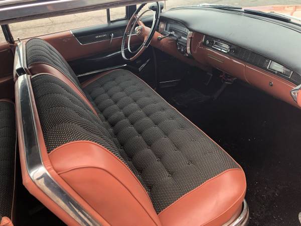 A quality #3 Coupe DeVille will start at about $18.5 and go up from there. The interior cloth does not appear to be quite stock. There was only one available engine on the DeVille, a 331 CID with a single 4BBL carb. (2x4 carbs offered on the Eldorado) Early OHV Caddie V-8 engines were noted for having brittle pistons, low grade fuels (Needs premium gas), improper timing or over reving the engine would cause the pistons to shatter mostly with disastrous results (wrist pins thru the cylinder). The rocker spear on the passenger side appears loose, check this area for damage. This car is not Elvis pink (his was pretty close to Mary Kay pink, think "titty" pink). This one is salmon pink. Interior chrome is dirty and weathered. Seller is somewhat of a puffer so check this one out before making any kind of an offer. Car is a nice well preserved example with some faults. Note orange wirenut under the radio.