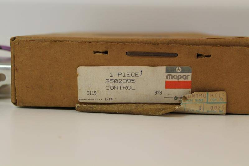 I have come across some boxes of NOS Mopar parts. This one is a Heater and A/C control for the best I can tell is a 71-73 C body with Auto Temp 2. This part is in brand new shape with no scratches or other defects. the black and white paint, and the chrome are outstanding. I would like to get $60.00 for this but I am open to a reasonable offer.