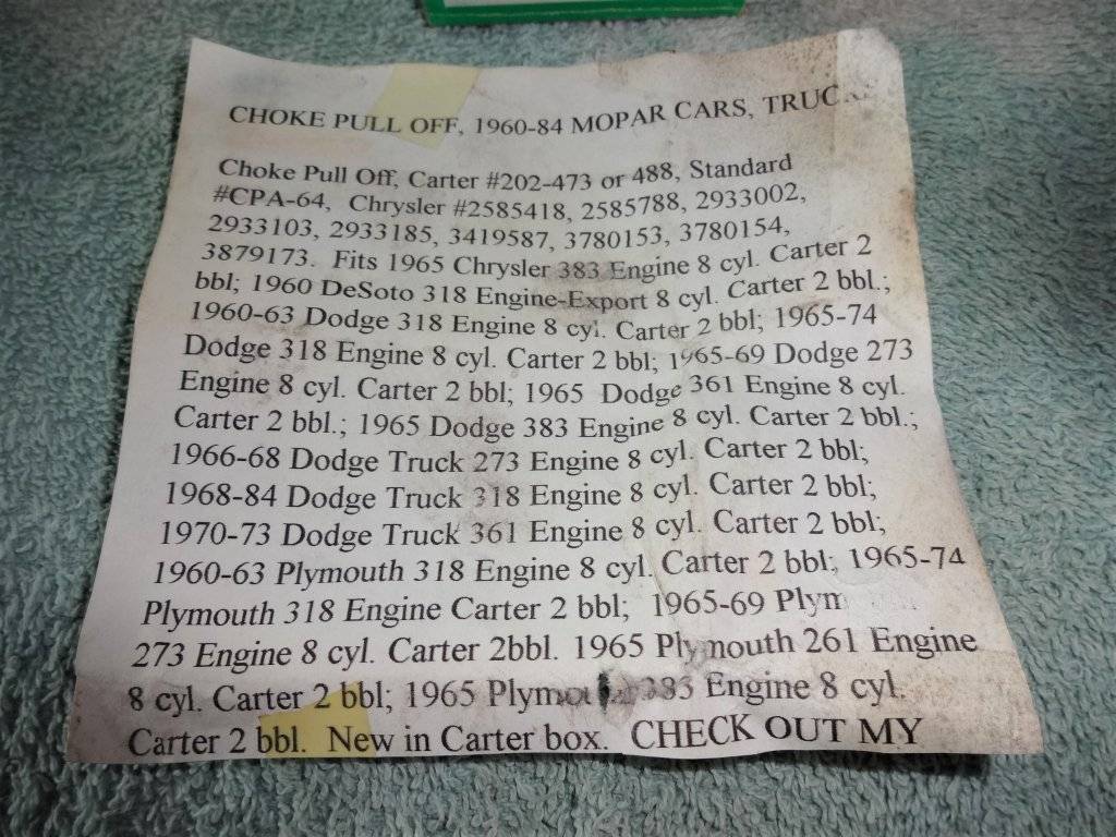 1960 t0 84 Mopar cars and trucks with 2bbl carb.