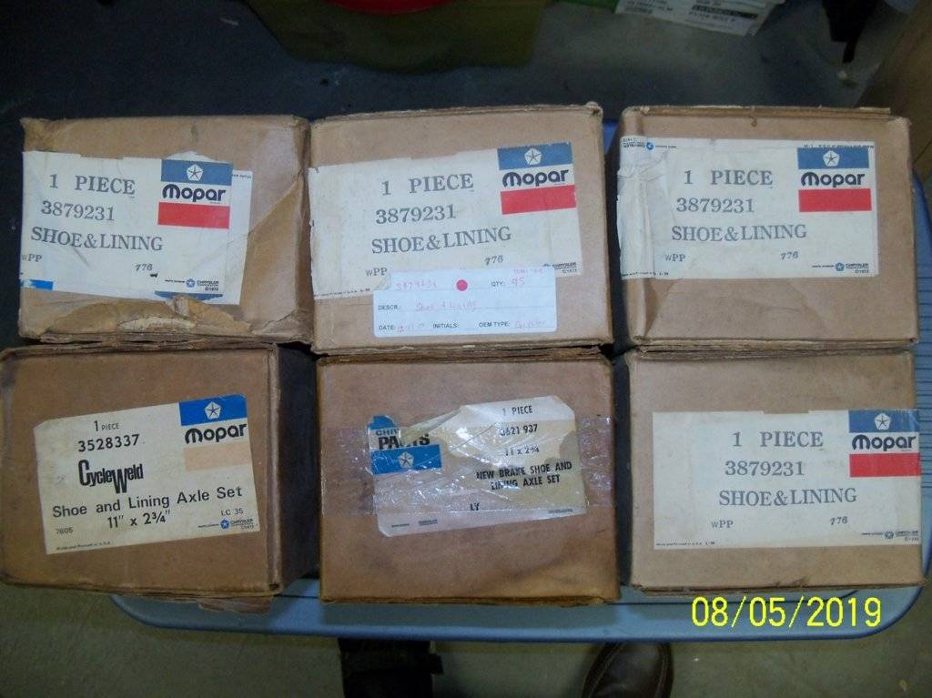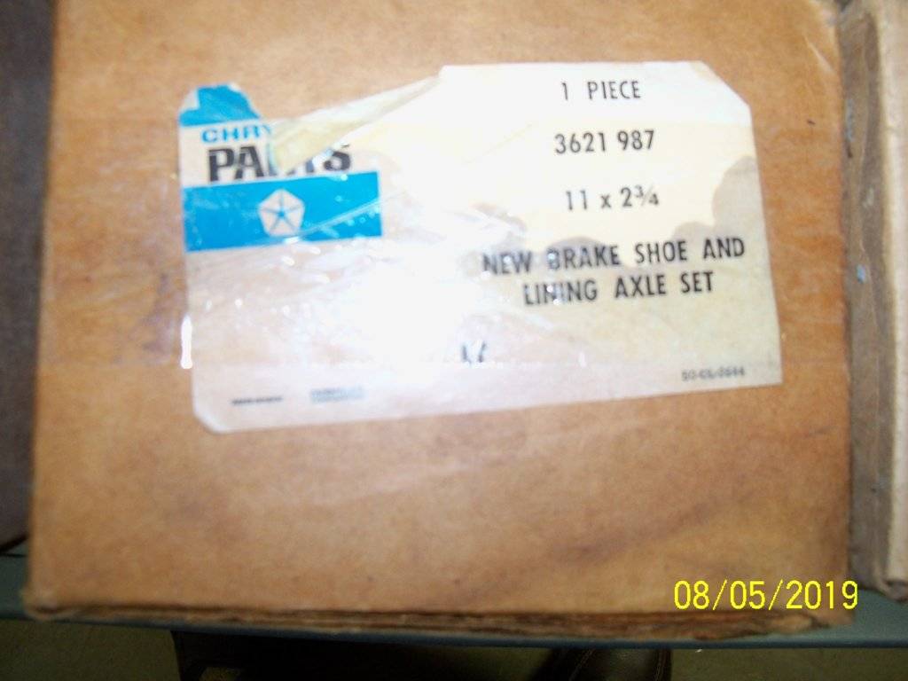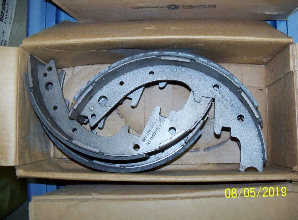 NOS Mopar # 3879231 (super-ceded part #) 11 x 2 3/4 brake shoe set for various 1965 1966 1967 1968 1969 1970 1971 1972 Chrysler C-body front & rear applications, Chrysler Newport, New Yorker, Plymouth Fury, Dodge Polara & Monaco, and 1963-72 various Dodge Truck applications including Dodge A-100. This number axle set uses the premium Chrysler "Cyclebond" linings.