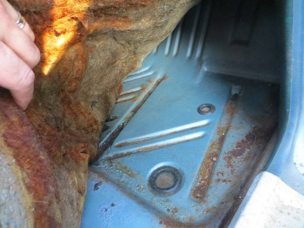 The trunk floor panel appears to have been replaced. Most likely at the time of quarter panel repair. I have not had the car on a lift to fully inspect the undercarriage, but, here is what I can tell from the ground. The frame and floor panels appear extremely solid. A photo of the carpet lifted on the passenger side is posted to reflect floor condition. While the stub frame is in overall good condition, it will require a patch weld on the driver side near the mount to the frame. It is the salt side of the car and from what I can tell may have had some residue which was not cleaned from the inner portion of the frame when the car was put in storage. Thus, there is approximately a 6" area of the lower box and side which will need a patch. The stub frame is still very solid other than that area and there is no sag to the car or frame. The inner front fenders reflect some surface rust under the hood but are extremely solid both underhood and in the wheelhouses.