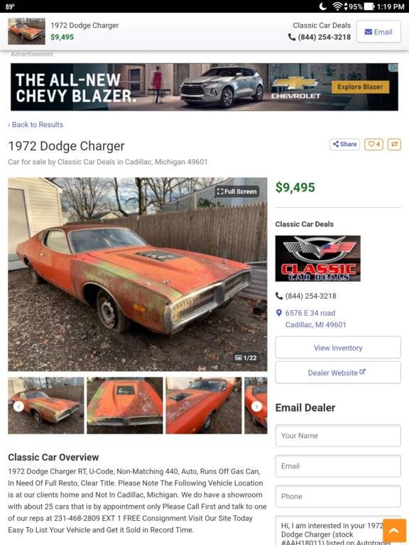 Runs and drives good, new clutch, used to be a 3 on the tree but someone moved it to the floor. Front floor pans have rust holes but rest of chassy is in good shape has normal rust spots around quarter panels. has original 318 engine. Great driver project .