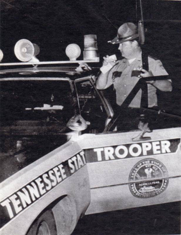 Not sure of first photo. 2nd photo is of the 1977 Truckers Strike, 3rd Photo is of Outlaw Roy "Wee Boy" Spencer (must have been after his escape), 4th photo Trooper Mark Fagan, 5th photo is Trooper Ledbetter on the hunt for James Earl Ray after Ray scaled the wall at Brushy Mtn St pen, 6th photo is aftermath of high speed chase involving Trooper Charlie Gattis, 7th photo is Trooper Billy Ford of the newly formed Tact Squad showing off his new Pepper Fogger, 8th photo is Trooper Bobby Fyke, standing at 6'7" tall, 9th photo is Capt. Milton Douglas who was shot in the chest and fore head before returning fire and killing the perp. AKA Bulletproof. Last photo is a Trooper named Mickey, but I cant remember is last name right off hand. Will start putting more detail to photos.