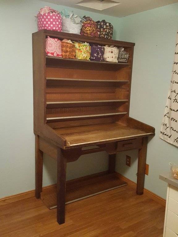 Old post office counter that was used to sort mail. It was filled with metal dividers, my wife and I removed them and now she uses it in her craft room. Date is difficult to read.