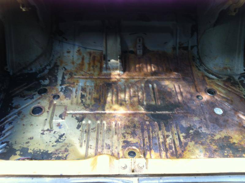 I did discover why the passenger side had fallen victim to rust more so than the driver's side. Apparently the aftermarket dual exhaust set up had been just a bit too close to the trunk floor as evidenced by the following photo.