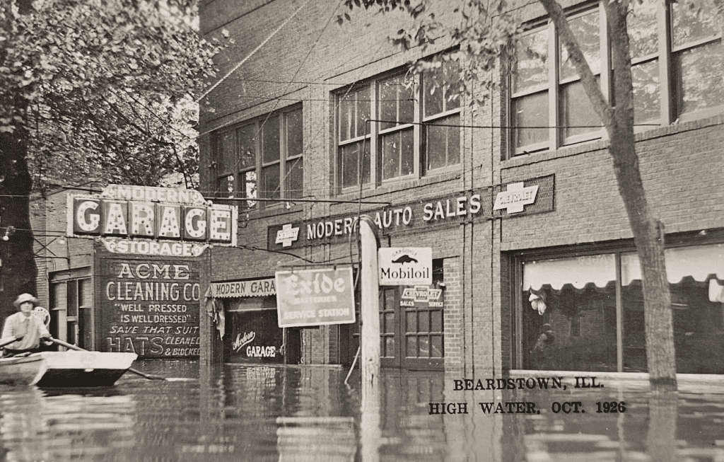 I can't remember where I found those pics, so what I did was do a Google image search and found a few references to the building being on E 4th St between Jefferson and Monroe in Beardstown, Illinois. A check of that on Google map and there's only one building there.