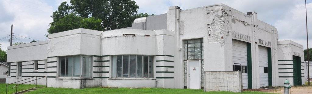 Last time I was in Muskogee was when my father inlaw passed 10 years ago. He was an ummm... Let's say interesting guy.Built 1938, former Muskogee OK Fire Station Number 3, 2011 W. Okmulgee Ave, Muscogee, OK. Streamline moderne. Stucco over brick.
