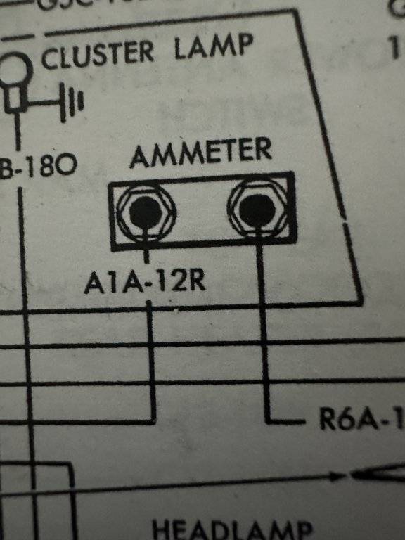 The BATT wire I labeled on the fuse block goes to the ignition switch. Then splices to the headlight switch, flip up headlight relay circuit breaker. So the red ammeter is the battery feed to the interior. Should I just splice that to the red that goes to the ignition switch so it powers the switch and the fuse block?