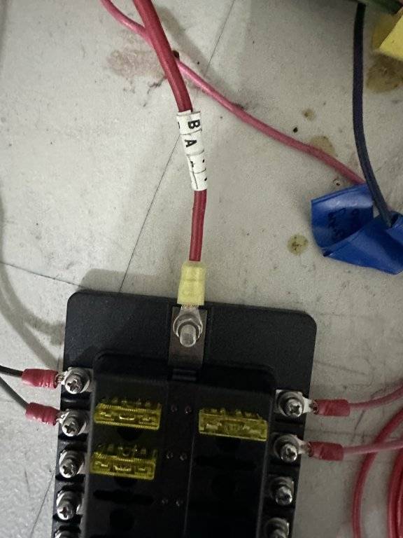 I labeled it. Someone told me to just put both ammeter wires on one terminal to bypass it (it had a crappy shunt tying both together but I cleaned up that fire hazard) I’m curious because there’s no actual feed from the bulkhead to anything other than to the ammeter. The black comes right from the bulkhead to the ammeter and nowhere else. So what powers the interior stuff?