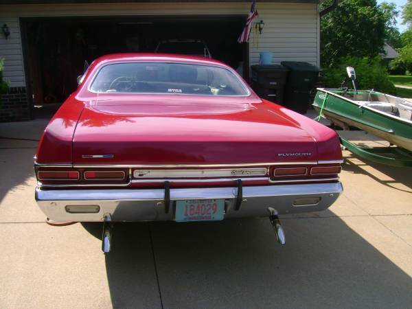 1969 Plymouth Sport Fury 35,000 Miles 383 330 HP. Same Package as Factory Road Runner. 3:55 Posi. VIN,Engine,Trans are all numbers matching. All Original. 2 Door with Bucket Seats. Wing Windows,Roll down Rear windows,Console with Floor Shift,Dual Exhaust,Fender top Turn signals.Red,White and Blue Accents. Upgraded distributor for smooth running and performance.All original extra or replaced parts go with the car.Runs Great. Great Body.Only 12" longer than a Roadrunner.