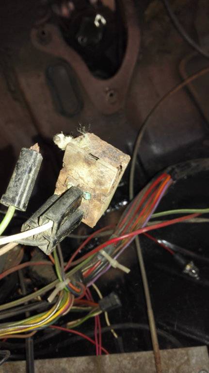 It looks like four terminals, one of which has rotted off. Is it the emergency flasher switch? The colors on the wires seem to indicate such.