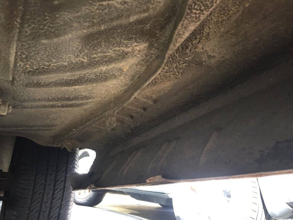I don't see any nasty-looking rust on the underside yet. The panel interiors look solid still! Has this thick black truck bed liner-like coating on a lot of stuff. Thoughts?